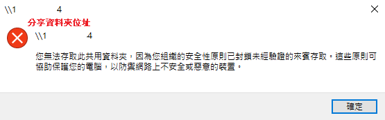Windows 10 在連結不需要帳號密碼的共用資料夾出現以下訊息
